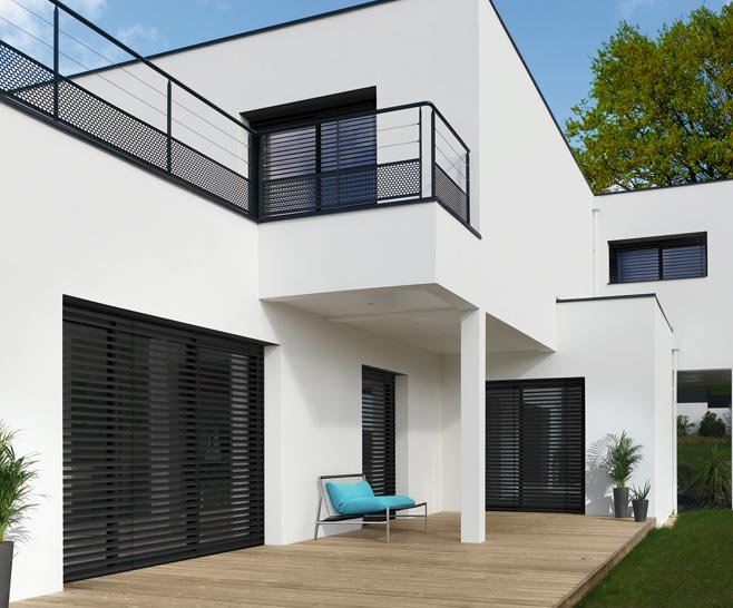 Las persianas de lamas orientables y apilables K•FLEX Z90 ofrecen una gestión precisa de la luz solar, combinando eficiencia y diseño. Gracias a sus lamas de aluminio delgadas y su integración discreta, garantizan privacidad sin renunciar a una vista exterior elegante.